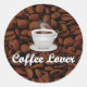 Pegatina Redonda Amante del café, frijol blanco/frijol