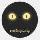 Abraza la mística felina de esta Halloween con ojos brillantes de un gato negro, insinuando el encanto de la noche, en un simple pero adorable pegatina. Para una reunión 'puramente espeluznante' que celebra el encantamiento de los gatos negros y el encanto de Halloween. Adaptado para aficionados a los gatos. Funciona sin texto también.