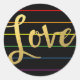 Pegatina Redonda Amar al arcoiris Pinstripe Relieve metalizado dora