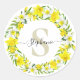 Pegatina Redonda Amarillo Blanco Daffodil Garland Monograma Nombre