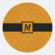 Pegatina Redonda Amarillo Dorado Turmérico Monograma de Cuatrefoil