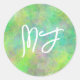 Pegatina Redonda Amarillo monogramado, verde y rosa