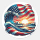 American USA Flag Beach Wave Sunset Patriotic Art Classic Round Pegatina