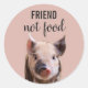 Este pegatina vegano tiene un lindo lechón negro y rosa en un fondo rosado. El personalizable negro dice "Amigo, no comida"