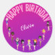 Pegatina Redonda Amigos de gimnasia "Feliz cumpleaños" morado rosad