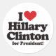 Pegatina Redonda Amo a Hillary Clinton por la presidencia