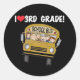 Pegatina Redonda Amo a los buses escolares de tercer grado