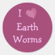 Pegatina Redonda Amo a los gusanos de la Tierra