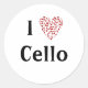 Pegatina Redonda Amo Cello Corazón Rojo de Notas Musicales