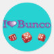 Pegatina Redonda Amo el Bunco con los dados rojos