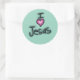 Pegatina Redonda Amo el Corazón Rosa de Jesús