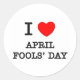 Pegatina Redonda Amo el Día de los Inocentes de Abril