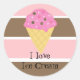 Un diseño divertido con un cono de helado de cerezo con espolvorines. Un fondo neapolitano a rayas de color rosa fresa, blanco vainilla y marrón chocolate. El dicho puede cambiarse como se desee.
