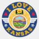 Pegatina Redonda Amo el mapa del estado de Kansas y su bandera