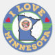 Pegatina Redonda Amo el mapa del estado de Minnesota y su bandera