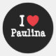 Pegatina Redonda Amo la camiseta de corazón de Paulina