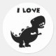 Pegatina Redonda Amo los dinosaurios tiranosaurio rex Silhouette Ar
