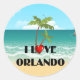 Pegatina Redonda Amo Orlando, diseño tropical,