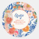 Elegante floral moderno cítrico limón y naranja eso es amor Spritz Despedida de soltera chinoiserie azul y blanco stickers florales  presenta acuarela flores azul marino y blanco  y flor naranja, melocotón y rosa en la parte frontal con rodajas de naranja . Unas perfectas invitaciones de despedida de soltera con tema Amalfi coast Positano para fiesta de despedida de soltera de verano.