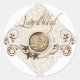 Este arte original pintado a mano, es de Audrey Jeanne Roberts. El texto dice "Amor al primer sorbo". El arte de la taza de capuchino es un corazón dibujado en la espuma y tres galletas recubiertas de chocolate.