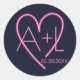 Pegatina Redonda Amor eléctrico Neon Corazón rosa y Monograma