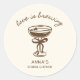 Eleva la decoración y los detalles de tu fiesta de compromiso con nuestros impresionantes Stickers "El amor está en ebullición", un diseño encantador que complementa perfectamente el tema de celebrar el amor y la conexión. Con una encantadora ilustración de un martini de espresso adornado con lazos dulces y voladores, este sticker es la mezcla perfecta de elegancia caprichosa y estilo moderno. Es imprescindible para cualquier novia que ame el café y que quiera que cada detalle de su celebración refleje su personalidad y su historia de amor.