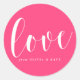 Pegatina Redonda Amor rosa caliente caligrafía moderna personalizad