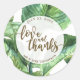 Hermosa coordinación gracias pegatinas con un diseño de hojas de palma/botánico/follaje y la tipografía "amor y agradecimiento". Fácil de editar o borrar los campos de texto para adaptarlos a sus necesidades personales. Perfecto para bodas/duchas/favores, etc. en cualquier época del año. Papel de correspondencia y otros elementos disponibles en esta colección tropical.
