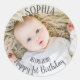 Pegatina Redonda Añadir su propia foto Primer cumpleaños Clásico Ro