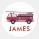 Pegatina Redonda Añadir tu nombre camión de bomberos rojos personal