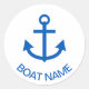 Pegatina Redonda Anchor Blue Personalizado Tu Nombre De Barco