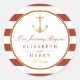 Pegatina Redonda Ancla Náutica de Oro, Boda de Ladrillo Rojo y Oro