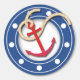 Un pegatina de temática náutica con ancla roja con soga y ojo de bufete azul. Invitación de coordenadas disponible en la tienda.