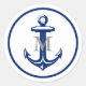 Pegatina Redonda Anclaje azul de la marina blanca | Monogramado