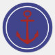 Pegatina Redonda Anclaje rojo sobre fondo azul náutico