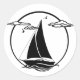 Pegatina Redonda Anclaje/velero de silueta naustera en blanco/negro