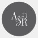 Pegatina Redonda ANDREA Classic Gray Dark Academia Boda Monograma