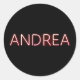 Pegatina Redonda Andrea Nombre en las brillantes luces de neón