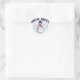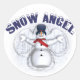 Hombre de nieve haciendo un ángel de nieve en la nieve. Texto azul Ángel de nieve.