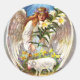 Pegatina Redonda Ángel de Pascua Vintage y Cordero