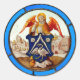 Pegatina Redonda Ángel de vidrio templado medieval y escudo de arma