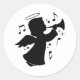Pegatina Redonda Ángel golpeando a una trompeta con notas