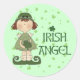 Este bonito diseño presenta a una niña pequeña vestida de verde y sosteniendo una gran roca de champú con la leyenda "Ángel irlandés" sobre un fondo de rocas de champú.