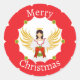 Pegatina Redonda Ángel moderno Feliz Navidad Wreath Rojo