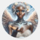 ilustracion bonito de una hermosa diosa hada afroamericana con alas de ángel.