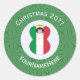 Un pegatina redondo muestra un ángel que lleva la bandera italiana en este pegatina para decorar regalos de vacaciones o decoración de Navidades. El ángel de los Navidades de la bandera italiana se encuentra dentro de un círculo blanco y fractal de cuadrados escabrosos. El fondo es un cuadrado gélido fractal verde. Agrega tu propio texto o personaliza con un nombre y el año. Il Tricolore es de tres franjas verticales de color verde, blanco y rojo.