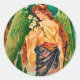 Pegatina Redonda Ángel sosteniendo una rama floral