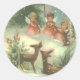 Pegatina Redonda Ángeles de época tocando música con ciervos