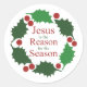 Un brillante Anillo de Rojo y Verde Holly con Jesús es Motivo de la Temporada en el centro de este gran pegatina redondo recuerda a la familia el verdadero significado para los Navidades!
