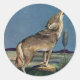 Pegatina Redonda Animal salvaje vintage, aullido de lobo en la luna